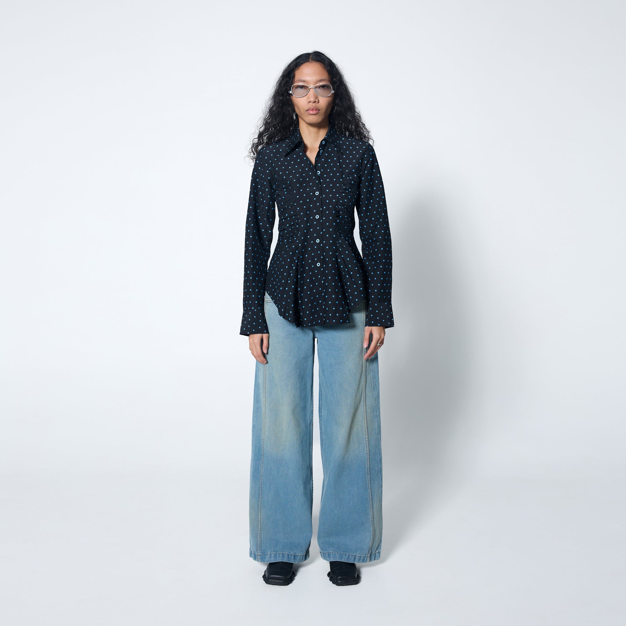 Shirt with gathered detailing at bodice for a sculpted, flattering shape