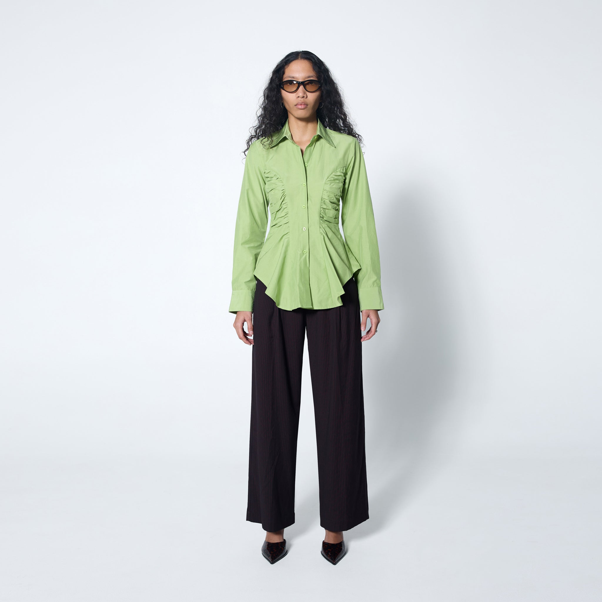 Relaxed-fit tailored trouser featuring soft knife pleats and fluid drape