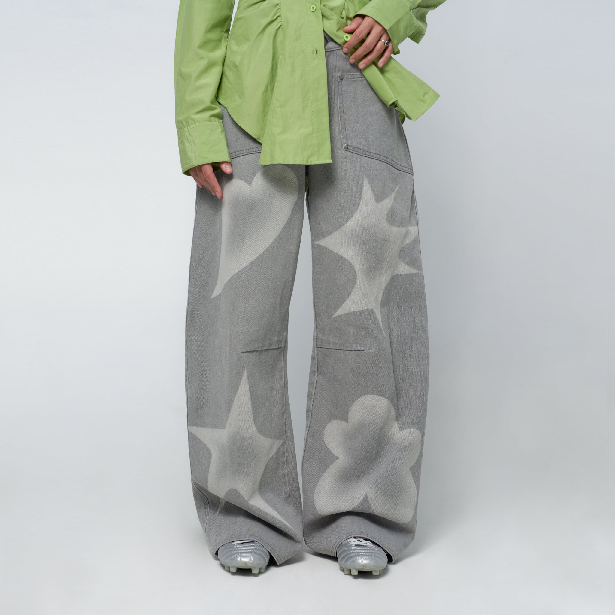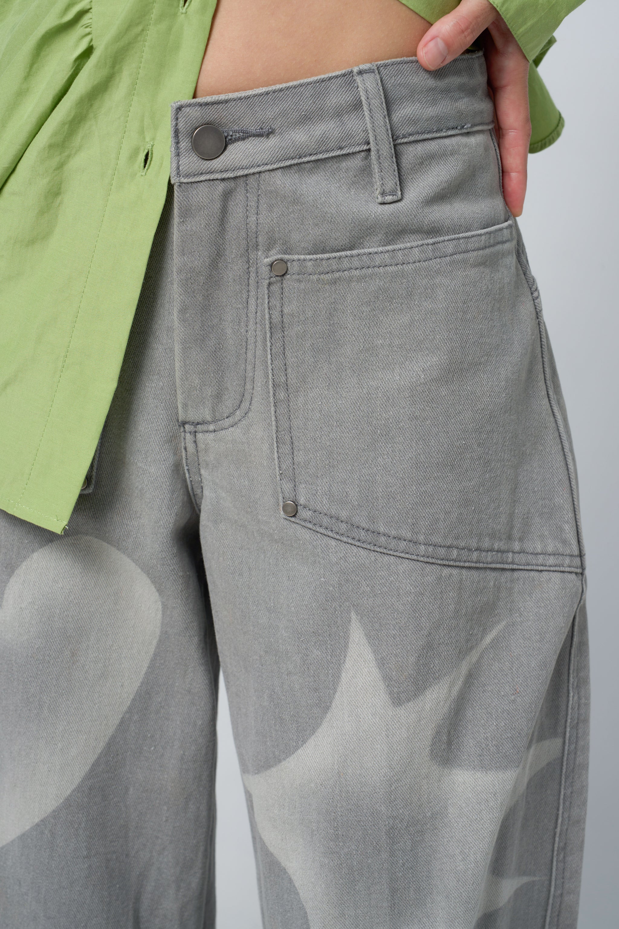 Mid-rise denim jeans with relaxed fit through hip and crotch